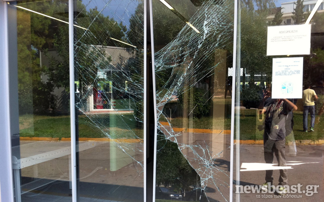 Έσπασαν μηχανήματα και την κεντρική είσοδο του κτιρίου
