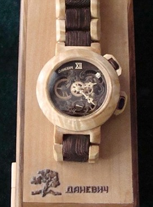 Μάλιστα, ο Ουκρανός Valerii Danevych δεν είχε ποτέ ασχοληθεί με την ωρολογοποιία, αλλά οι σχεδόν αποκλειστικά ξύλινες κατασκευές του είναι απολύτως λειτουργικές. Το μόνο που δεν είναι ξύλινο και είναι απαραίτητο για τη λειτουργία είναι ένα μεταλλικό ελατήριο.