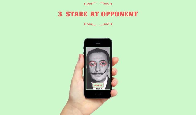 Τι κάνει λοιπόν το app; Σε βάζει σε διαγωνισμό βλέμματος με τον Νταλί, αν και έτσι όπως έχουν τα πράγματα, η εφαρμογή μεροληπτεί και ο ζωγράφος κερδίζει πάντα.