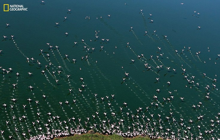 Φλαμίνγκος «απογειώνονται» σε μια εκπληκτική στιγμή. Φωτογραφία Yu Huiping