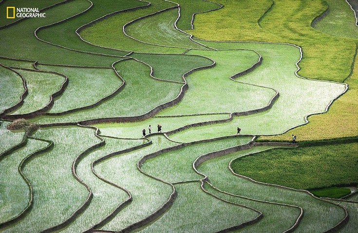 Ορυζώνες στο βόρειο Βιετνάμ στην αρχή της νέας σεζόν. Οι εργάτες τους διασχίζουν επιστρέφοντας σπίτι τους στο τέλος της ημέρας. Φωτογραφία: Quynh Anh Nguyen