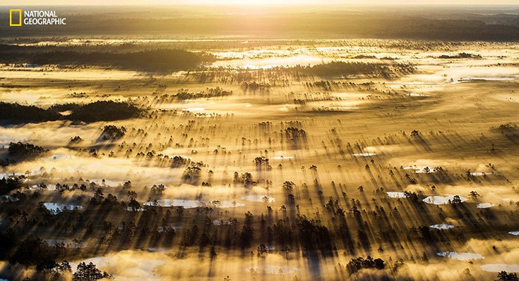«Μετά το δειλινό παρατηρήσαμε το σχηματισμό ομίχλης και ελπίζαμε να μην χαθεί ως το πρωί. Βάλαμε το ξυπνητήρι μας τρεις ώρες πριν το χάραμα και οδηγήσαμε επί δύο ώρες στο σημείο από όπου μπορούσαμε να έχουμε πανοραμική θέα», περιγράφει ο φωτογράφος Kaiti Lillipuu. «Στήσαμε γρήγορα το drone μας και το πετάξαμε πάνω από τα δέντρα, η θέα έκοβε την ανάσα: ήλιος, ομίχλη, σκιές».